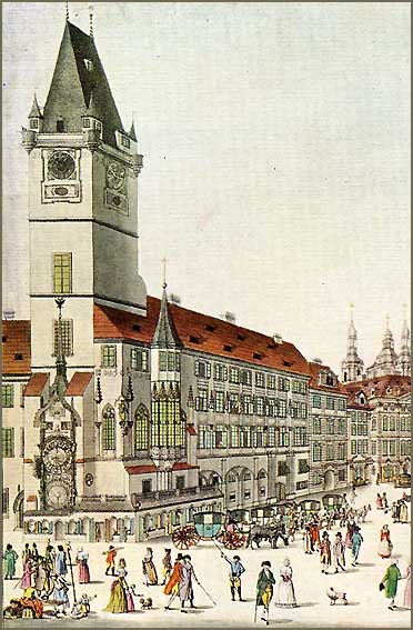 stav po opravě v roce 1866. V odkazu ještě rytina orloje v Olomouci s