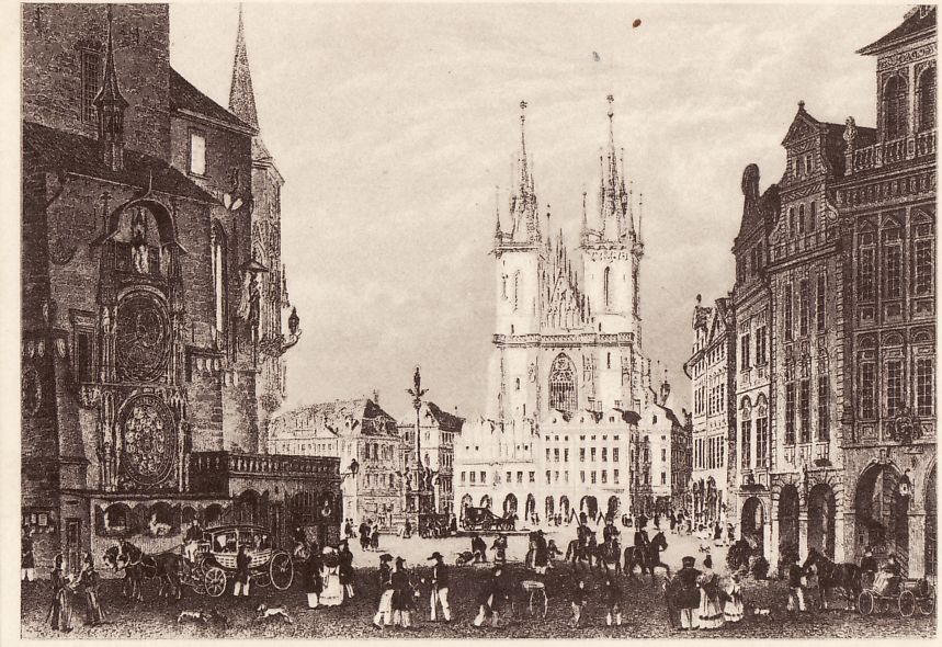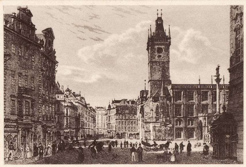 Pohled - orloj v roce 1868 Fr. Fridrich
