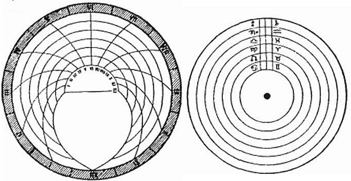 Země". Vitruvius v deváté knize o architektuře popisuje konstrukci analémmat.