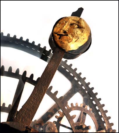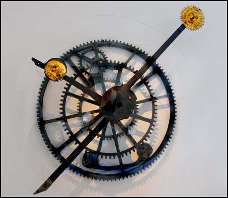 Na první pohled je vidět, že jde o jinou, složitější konstrukci něž byla použita u Pražského orloje. Vznikla také pravděpodobně o více než 150 let později. Přesto používá obdobný trik s nedodržením modulu ozubených kol, jako v Praze. Říká se, že tehdy snad ani nevěděli, že to nejde, tak to prostě udělali. Opět souosá kola pro pohyb Slunce a Měsíce s různým počtem zubů (114 a 118) zabírají do jednoho pastorku. Otáčení ekliptiky je odvozováno od rozdílu v rychlosti otáčení těchto dvou kol vzájemným převodem vloženým mezi ně. Uveřejňujeme skicu, kterou udělal pražský orlojník Petr Skála včetně výsledků jeho výpočtů přesnosti soukolí. Srovnejte schema soukolí a fotografie.