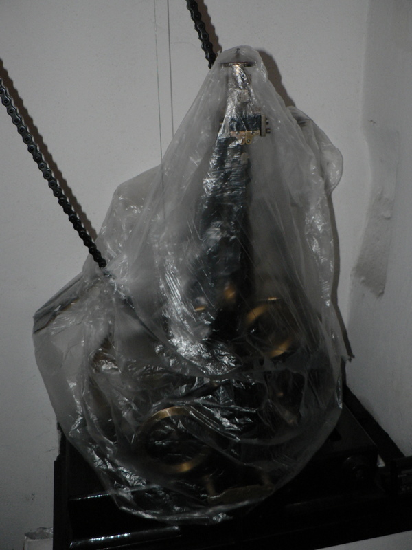 Ve středu 20. dubna 2011 je schodiště je opravené, orloj rozbalený, zavěšena závaží, stroj otřený od prachu, seřízený a spuštěný.