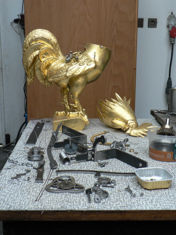 Sice se během opravy vyskytly problémy, ale "problémy jsou od toho, aby bylo co řešit", říká Petr Skála. Kohout je trochu těžší než se myslelo, tak ho rozpohybovat nebylo tak jednoduché. Pomohly pružiny a již řádně očištěný kohout může divákům radostně zamávat křídly ...