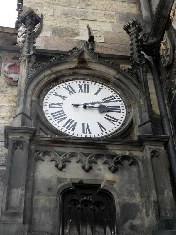 Pouze ciferníky po stranách orloje, které ukazují běžný občanský