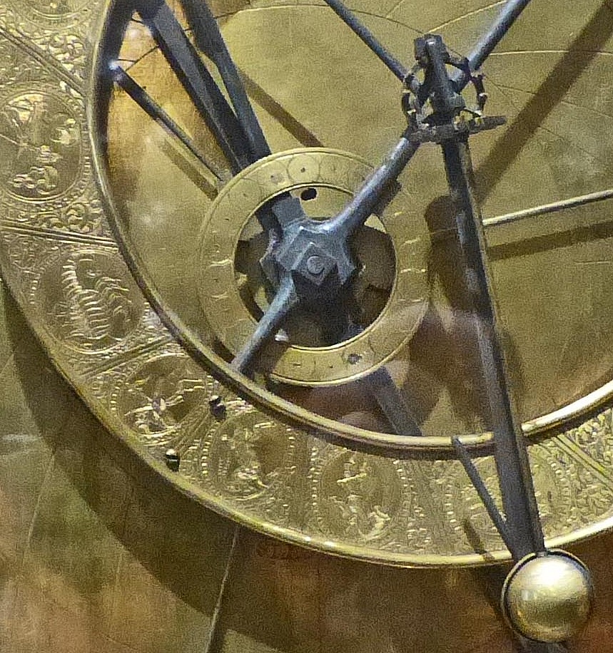 Střední hřídel, která může nést ciferník nejblíže k divákovi je hřídel ekliptiky, na ní je nasazena hřídel Sluce a na ní hřídel Měsíce. Toto uspořádání hřídelí je unikátní. Vodiče sluníčka a měsíčku jsou ke středu ciferníku vedeny vnějškem ekliptiky. Je to tak proto, aby bylo možné udržovat symboly Slunce a Měsíce na ekliptice. Pro otáčení měsíční koule je však nevhodné, protože neumožňuje umístit ozubený převod do středu ciferníku.